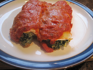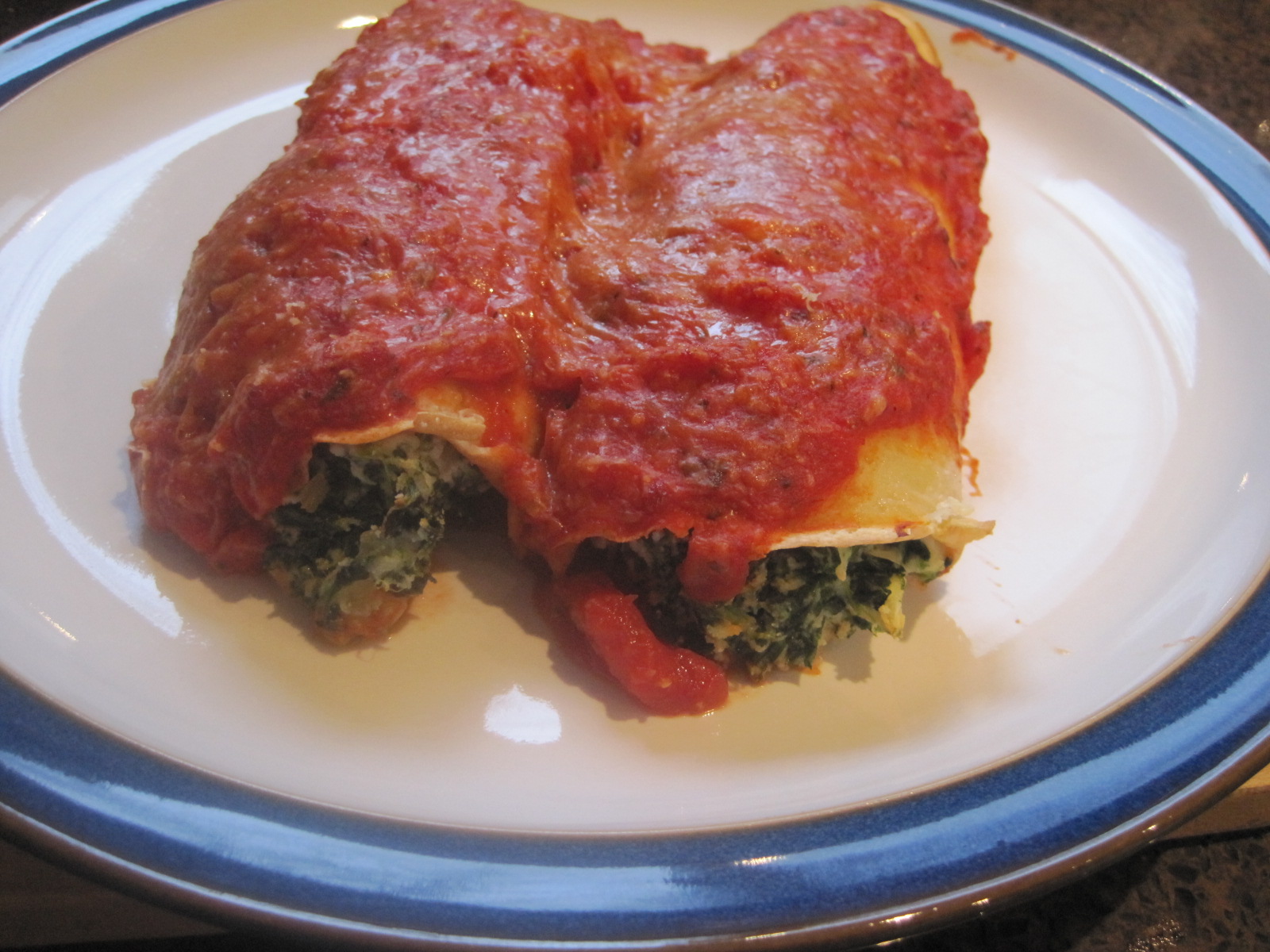 The pancakes worked perfectly here, but of course you don't have to go to all that trouble. You could use manicotti or giant pasta shells (but then you have to cook them before stuffing them, which is still a nuisance). You could make an inside-out lasagne. You could probably even use tortillas and call it Italian enchiladas. Or you could just make pancakes for breakfast and plan to have enough left over to make tomorrow's dinner.