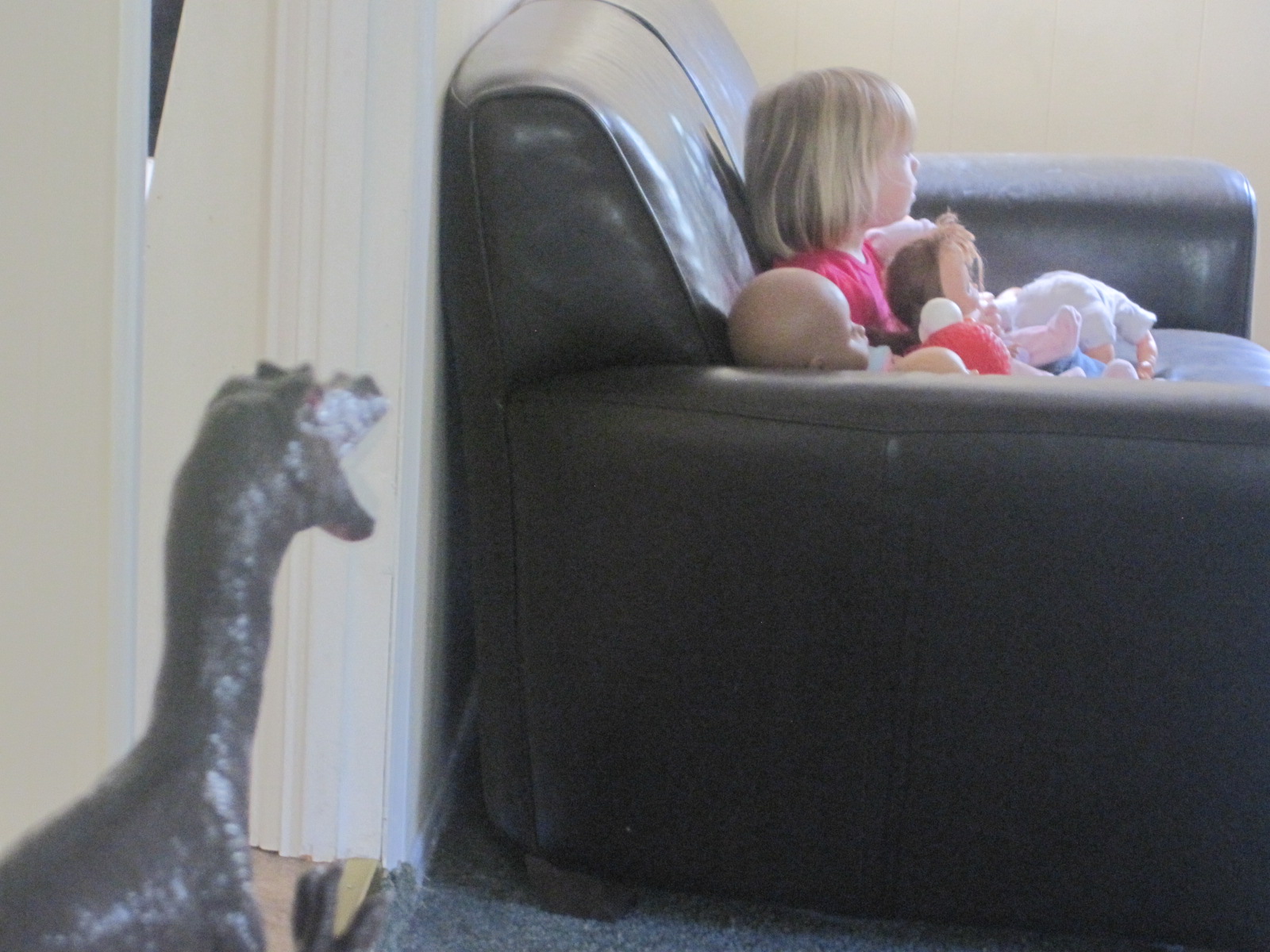 | Hanging out, watching TV. We seem to have been infiltrated by Baby Elmo.